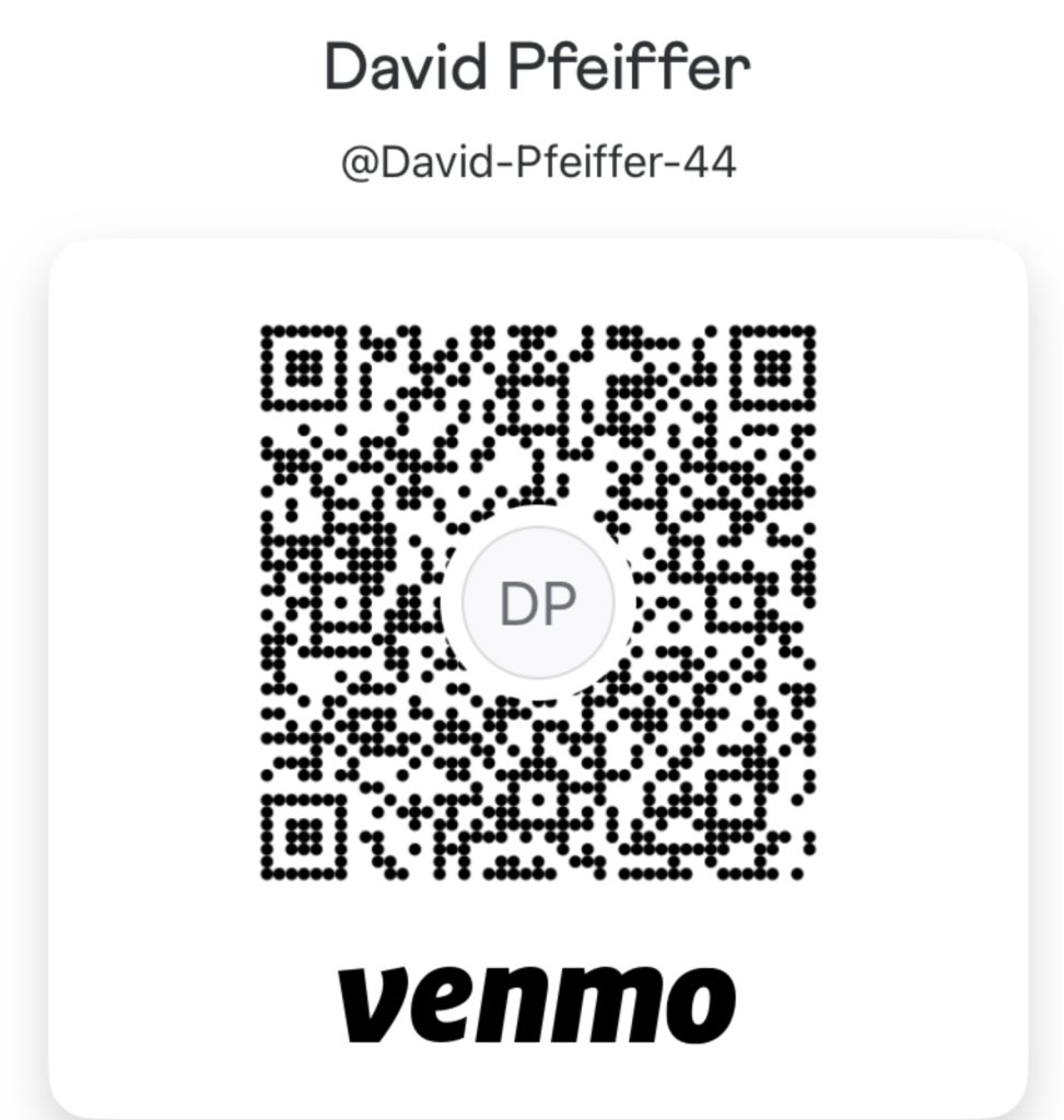 To Pay: Online (preferred) – Venmo: @David-Pfeiffer-44